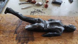 Die Wachsfigur ist hier massiv ausgeführt. Das gibt mehr Flexibilität in der Gestaltung, die leicht additiv oder subtraktiv bearbeitet werden kann