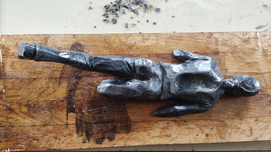 Die Wachsfigur ist hier massiv ausgeführt. Das gibt mehr Flexibilität in der Gestaltung, die leicht additiv oder subtraktiv bearbeitet werden kann