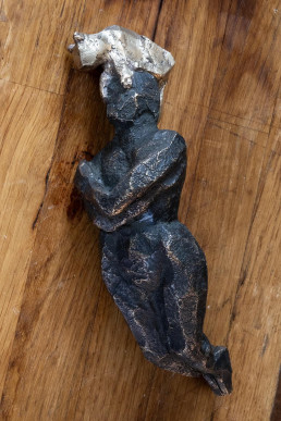 Gegossen im Urgussverfahren wie vor ca. 5.000 Jahren, mit verlorener Form. Das bedeutet, dass die Wachsvorlage bei dem Herstellungsprozess verloren geht. Die Wachsform wird mit Tonerde die mit Stroh vermengt wurde „eingepackt“. Dann wird das Wachs beim Brennen der Tonform geschmolzen und gibt so den Hohlraum frei, in den später die Bronze gegossen wird. zum brennen des Tons und erhitzen der Bronze kam uns ein neuzeitlicher Gasbrenner, ein Ventilator und etwas Schmiedekohle zu Hilfe.