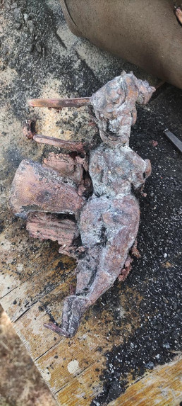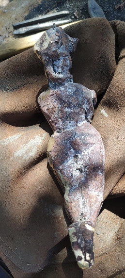 Mit Tonerde und Stroh eingepackte und schon gebrannte Figur.