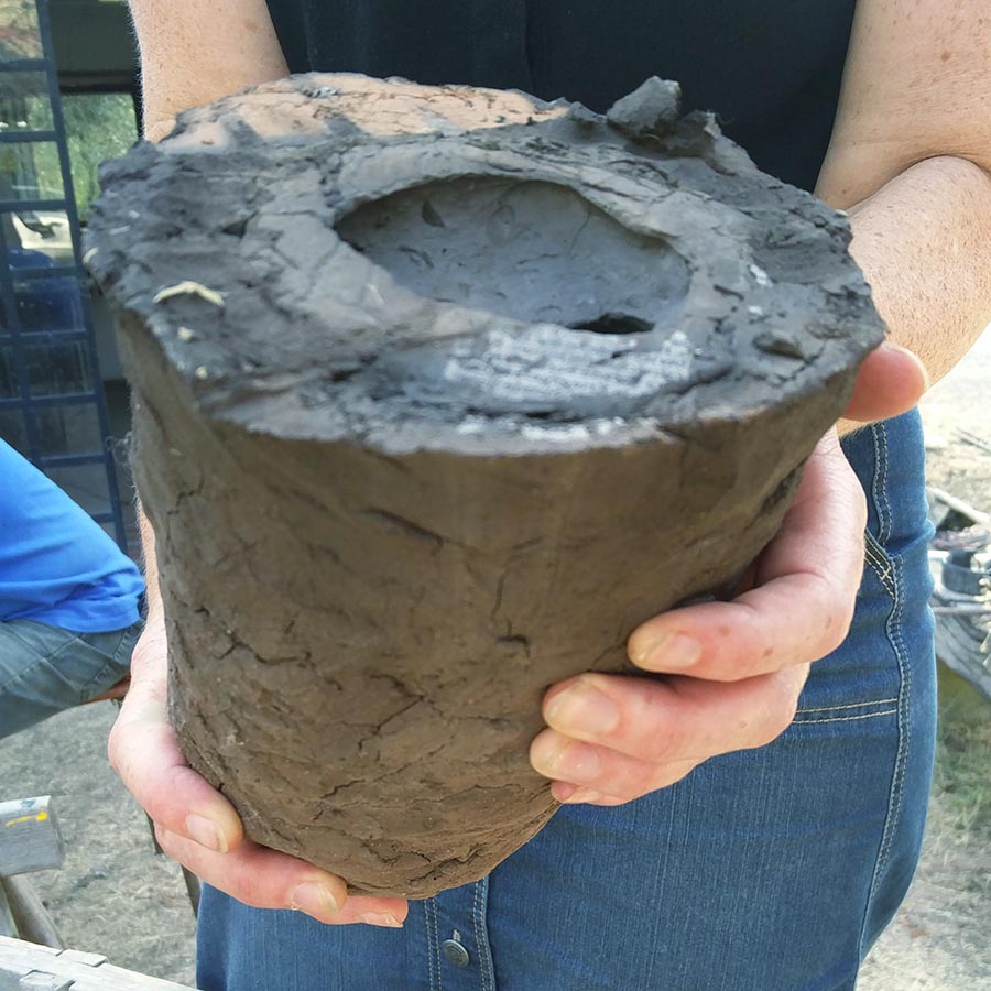 Mit Tonerde und Stroh eingepackte und schon gebrannte Figur.