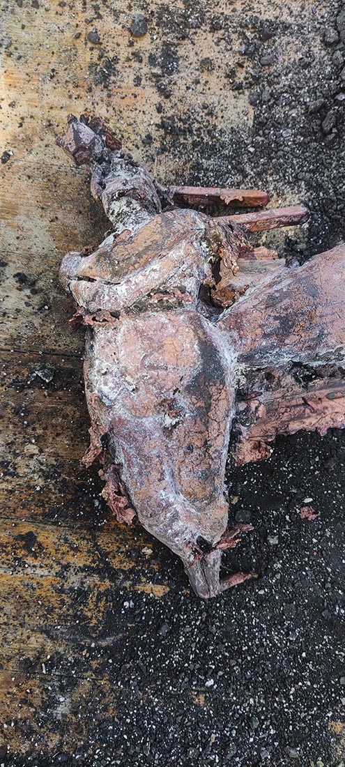 Die grobe Struktur ist ein Zeichen der altertümlichen Gusstechnik.