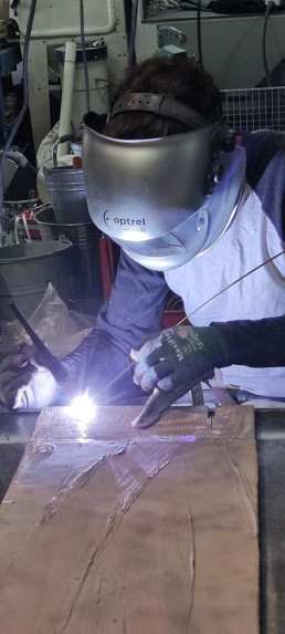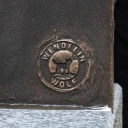 Aufwändige Nachbearbeitung der Skulptur mit Flex, Fräser, Hammer und Meisel, Punzeisen … und Patina.