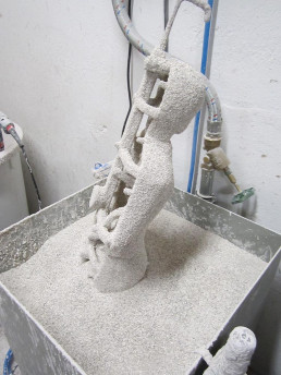 Nach dem die Skulptur mit Glasperlen gestrahlt wurde kann man erahnen, wie die Skulptur aussehen wird.