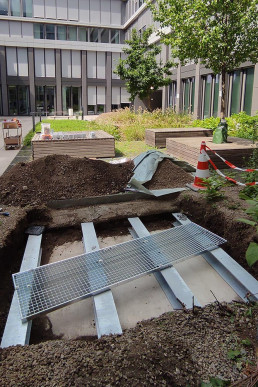 Auf demBetonfundament wurden Träger und ein Schwerlastgitter befestigt.